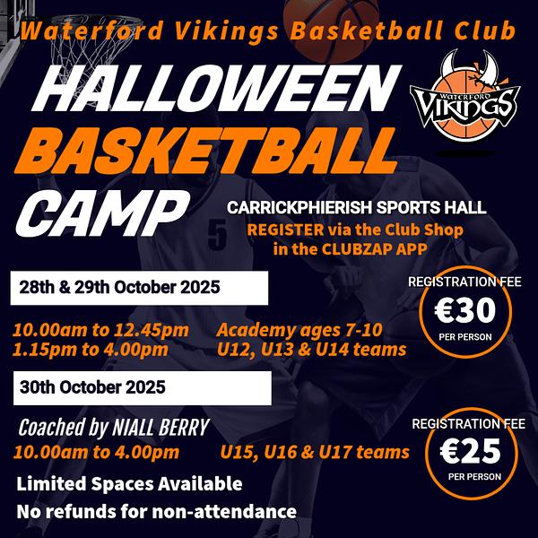 On the 28th and 29th October our Academy camp will be from 10am to 12.45pm and our U12, U13 and U14 teams' camp will be from 1.15pm to 4pm.