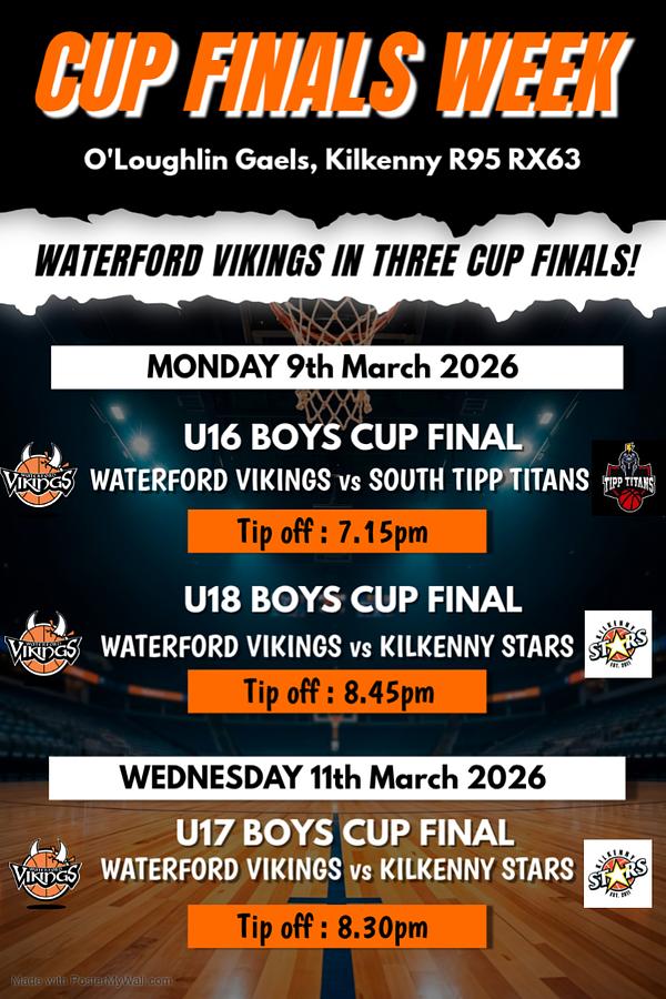 U17 Cup Final - Waterford Vikings v Kilkenny Stars, Wednesday 11th March at 8.30pm, O'Loughlin Gaels, Kilkenny.